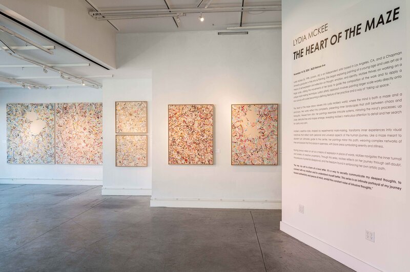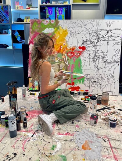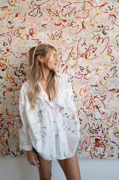Lydia McKee (b.1998) is London-born abstract artist. She began painting at a young age and has continued to create art throughout her life. Lydia uses her art as an exploration of self expression, emotion and experience. Lydia thrives on working on a large scale, utilizing the movements of her body to guide the composition of her work and to apply her unique mark-making techniques.